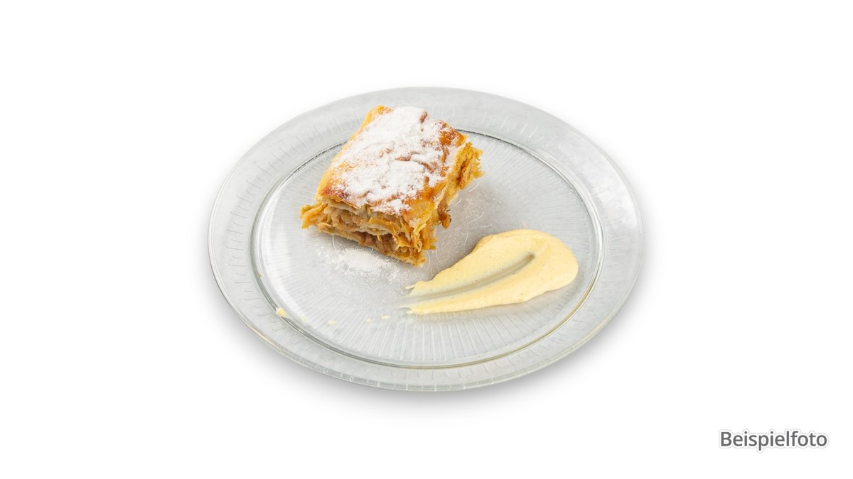 nach Hausfrauenart in Apfel-Zwiebel-Sahnesoße, mit Bratkartoffeln und kleinem Salat