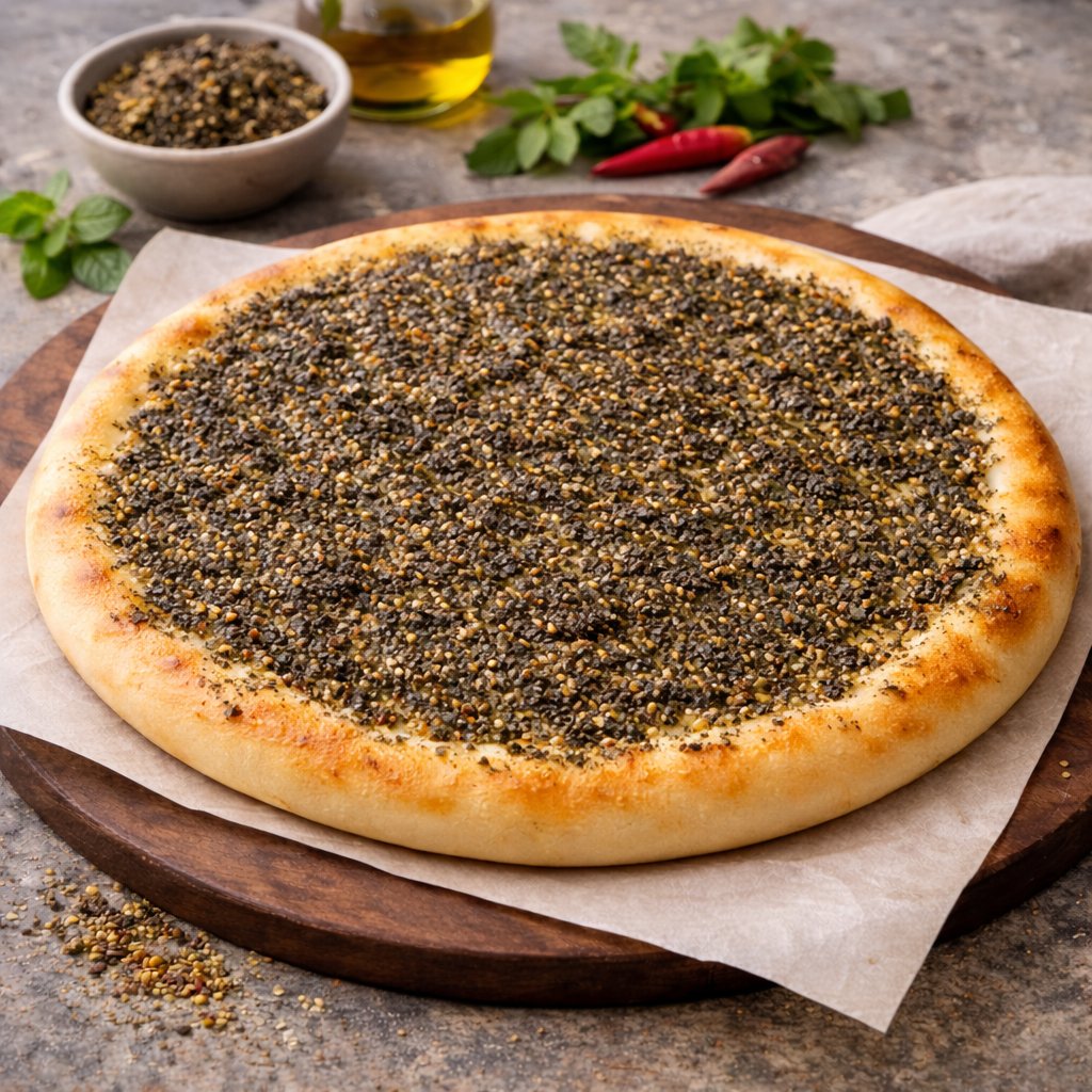 Hausgemachtes Fladenbrot, frisch aus dem Ofen, mit Za’atar aus ausgewählten Kräutern – natürlich und ausgewogen