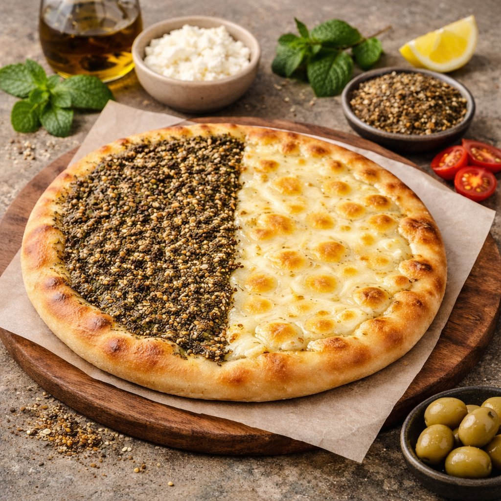 Manakish sind traditionelle orientalische Fladenbrote, frisch aus dem Ofen, belegt mit Za’atar, Käse oder Fleisch. Einfach, herzhaft und voller Geschmack..