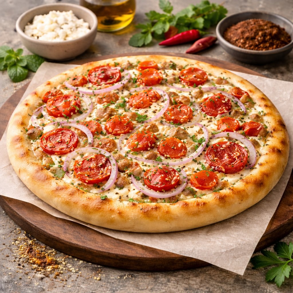 Manakish mit Käse, Tomaten und Zwiebeln