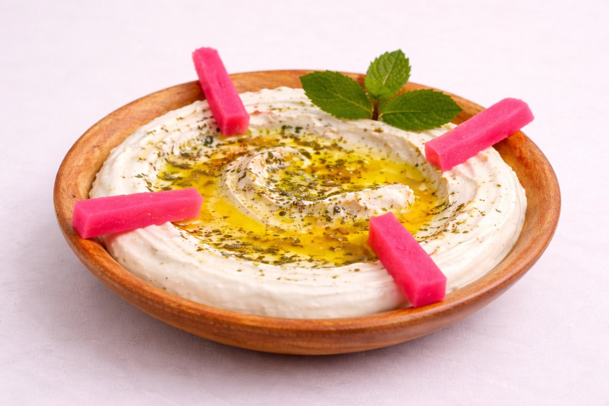 samtiger Kichererbsen-Dip, verfeinert mit Tahini, Zitrone und Olivenöl