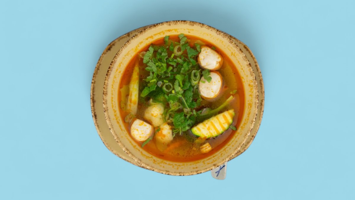 sauer-scharf mit Gemüse, Lauchzwiebeln, Koriander und einer Zutat deiner Wahl