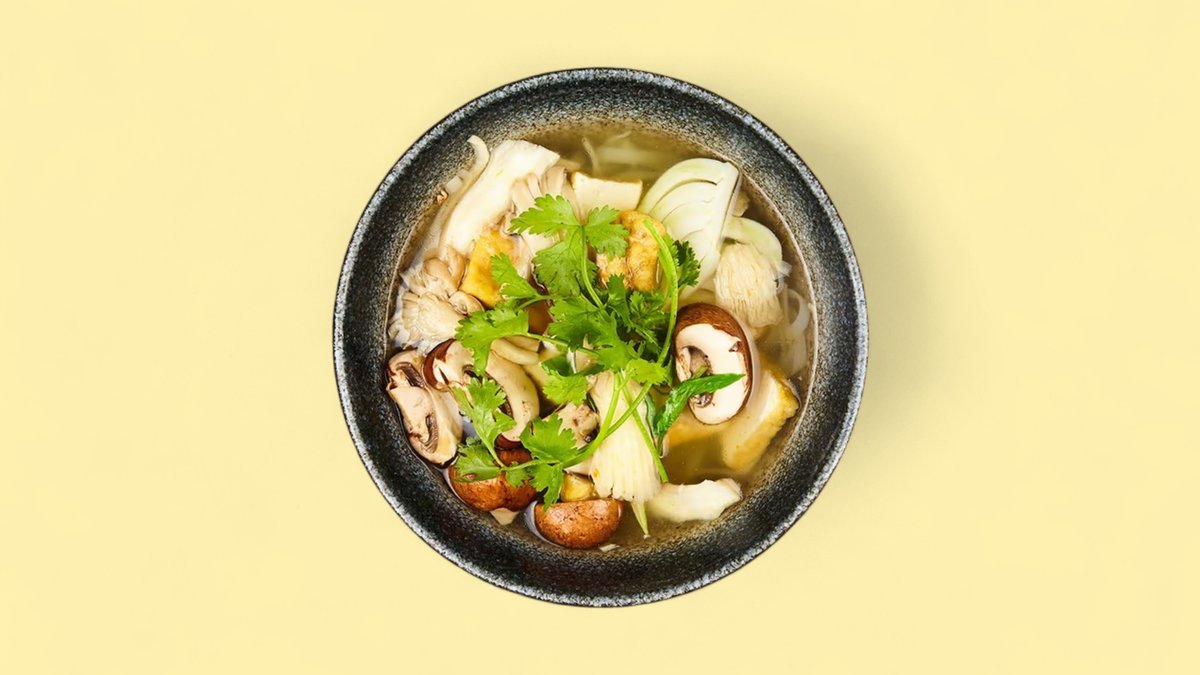 mit gebratenem Tofu, Champignons, Duftpilzen, frischem Ingwer und traditioneller GewĂĽrzmischung