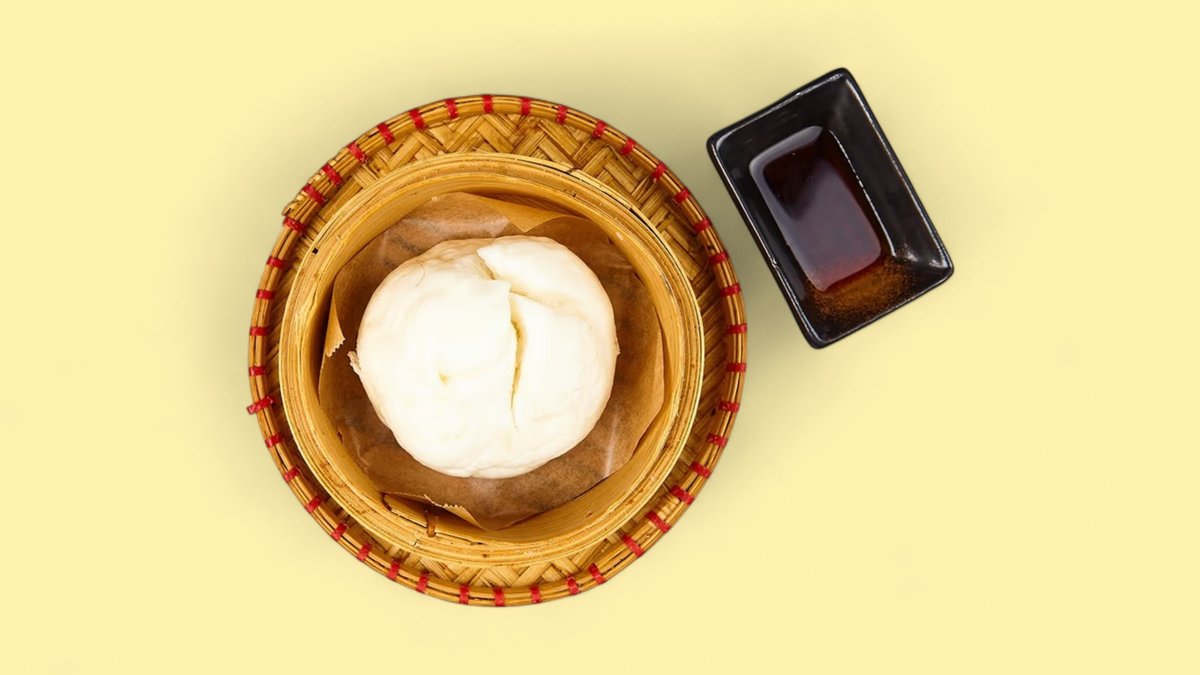 4 Stück gedämpfte Teigtaschen gefüllt mit Gemüse, Tofu und Sojasoße