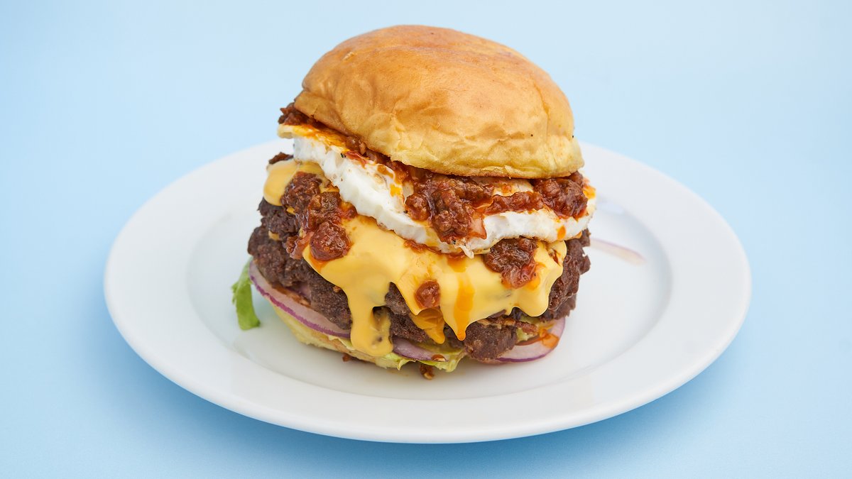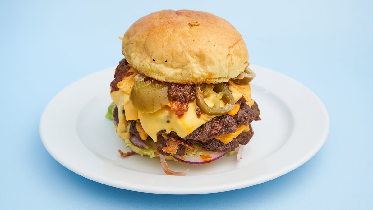 alle Burgers werden mit Rindfleisch, Kartoffelbrötchen, Eisbergsalat, Tomaten, roten Zwiebeln, Dillgurken und Hut-Soße zubereitet („Chili Smash Burger” und „BBQ Smash Burger” werden ohne Hut-Soße zubereitet)