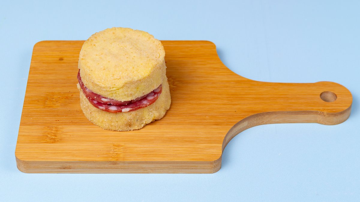 mit Kartoffeln, Caciocavallo, Mortadella, Salami vom Rind, Pfeffer, Ei, gekochtem Schinken vom Rind und Büffelbutter