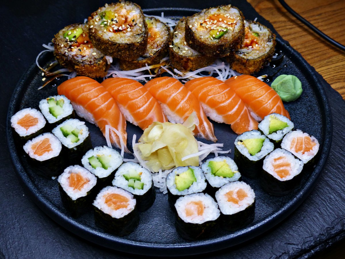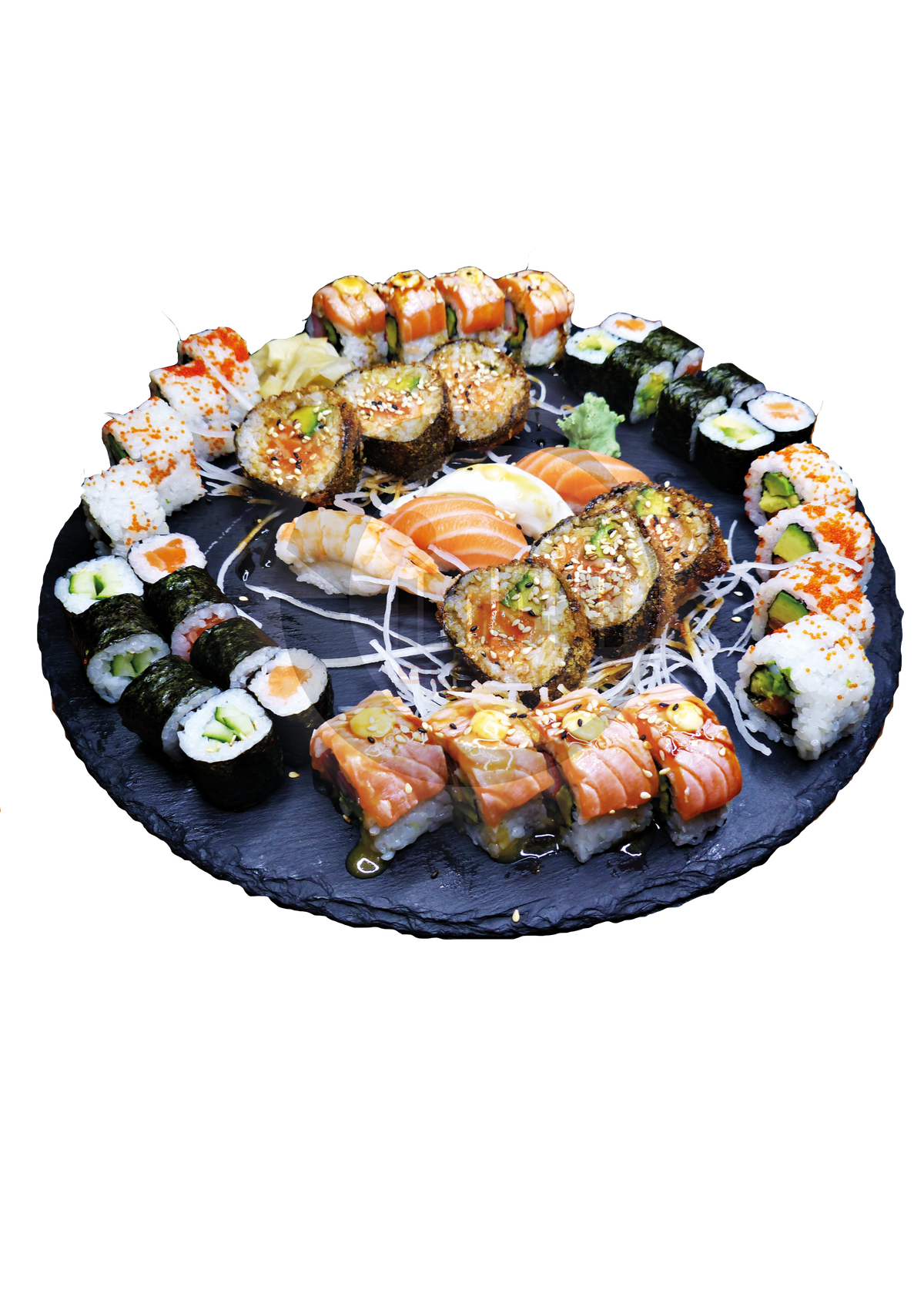 42 StĂĽck fĂĽr 2 Person 16 Maki (Sake, Avo/Kappa), 4 Nigiri gemischt, 6 Sake Futomaki, 16 ( Cali Spicy/Alaska) Uramaki Spezial