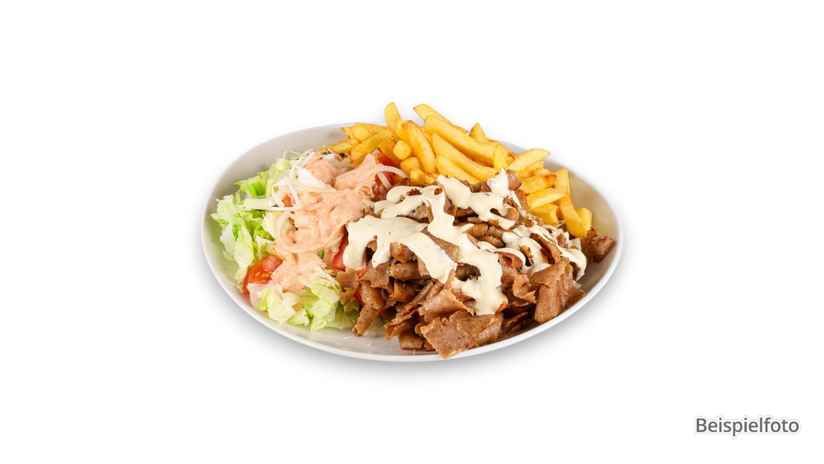 mit Schnitzel vom Hähnchen, Salat, Steakhaus Pommes und Soße deiner Wahl