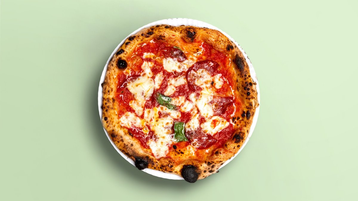 extra scharfe Margherita mit scharfer Salami und Nduja, passierten Tomaten, Fior di Latte Mozzarella und Basilikum