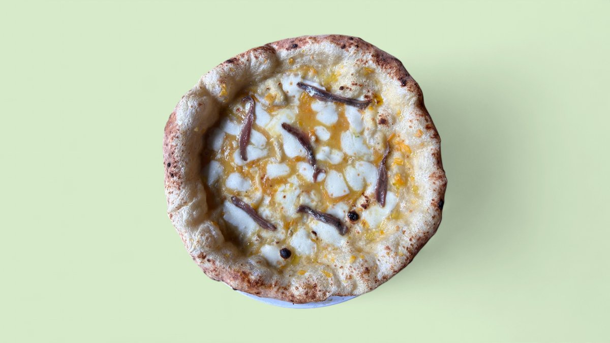 Pizza Provola, Pomodoro Giallo e Acciughe