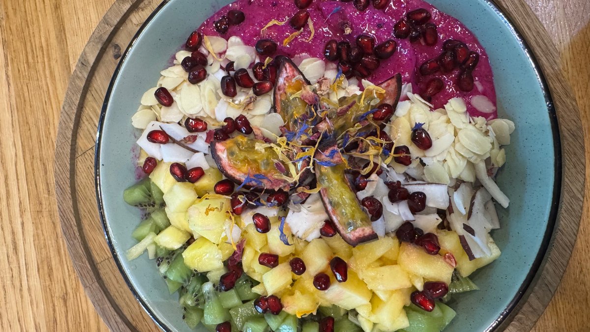 alle Gerichte werden mit mit hausgemachtem Granola, frischen Früchten, Nüssen, Gewürzen, Samen und Kernen zubereitet