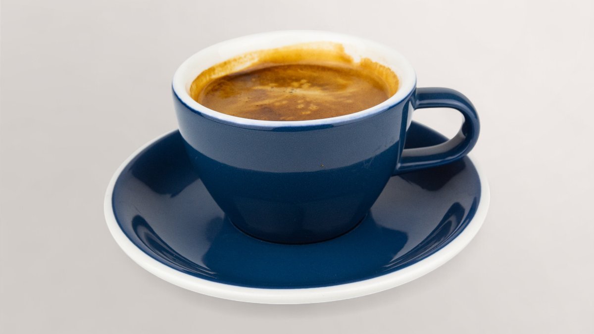 Espresso, verlängert mit heißem Wasser. Kräftig und pur.