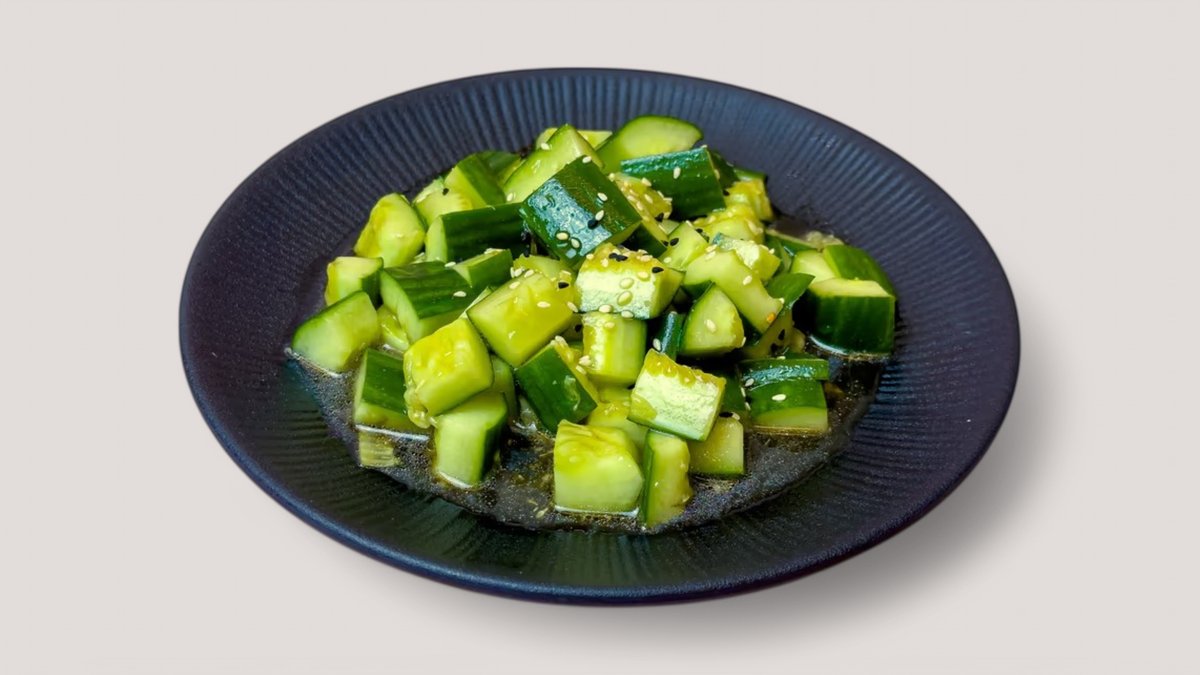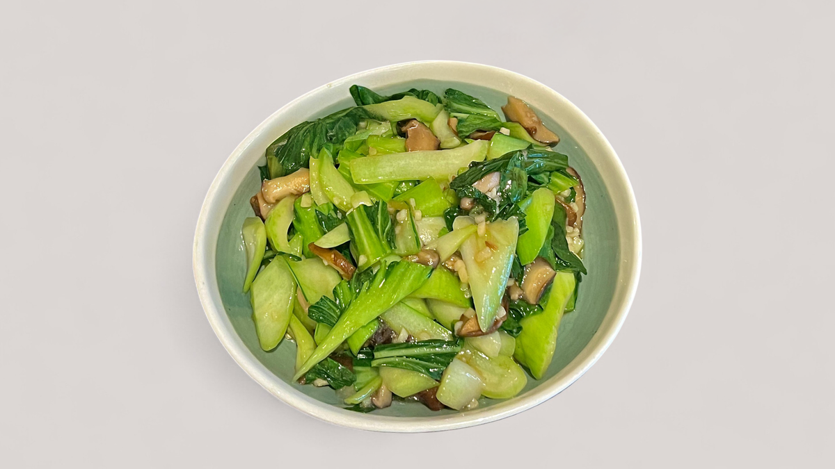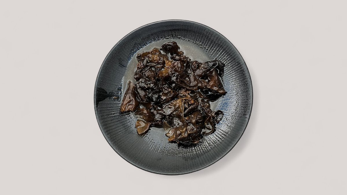 mit Kartoffeln, eingelegtem Senfstiel, scharfen Pilzen, zähen Glutensticks und Salat