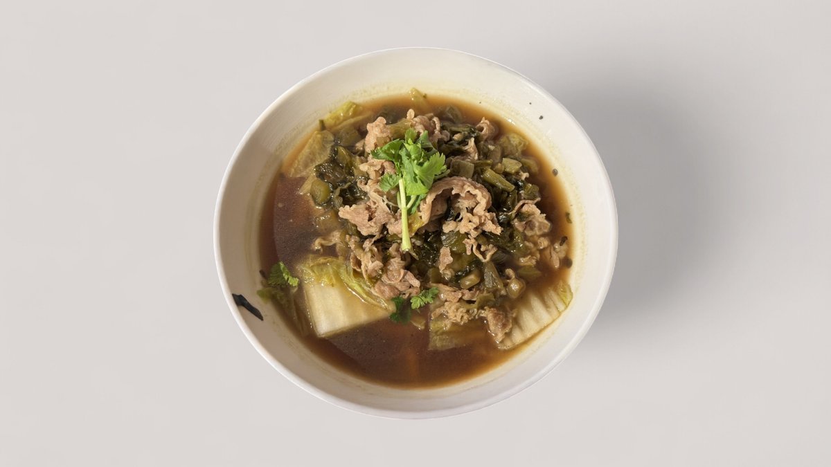 S5. Scharfe Nudelsuppe mit eingelegtem Gemüse und Rindfleisch