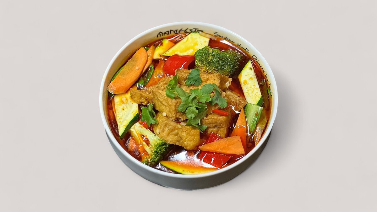 S2. Scharfe Nudelsuppe mit Tofu und Gemüse