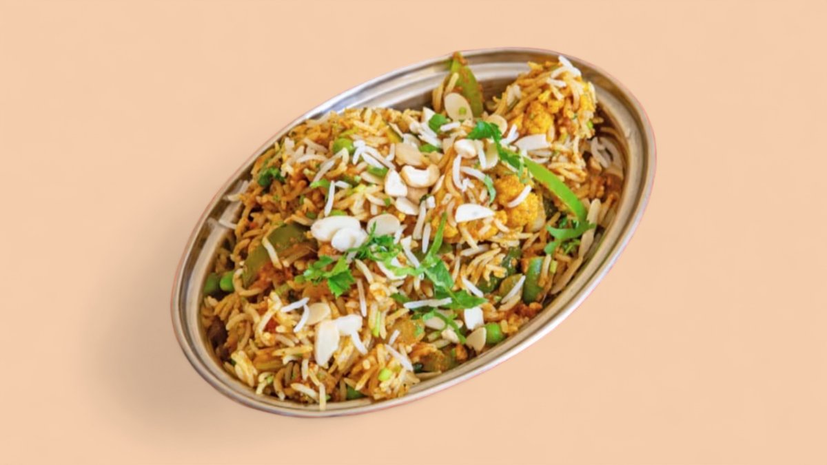 frisches Gemüse mit Paste aus Cashewnüssen, Mandeln und Muglai Käse-Sahnesoße Das Gericht kann Spuren von Nüssen enthalten.