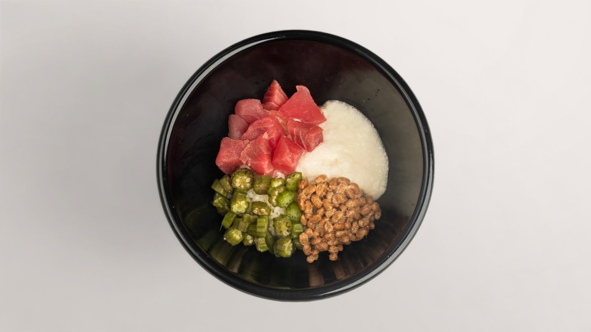 mit Thunfisch, Okraschoten, gegorenen Sojabohnen und Yamswurzel