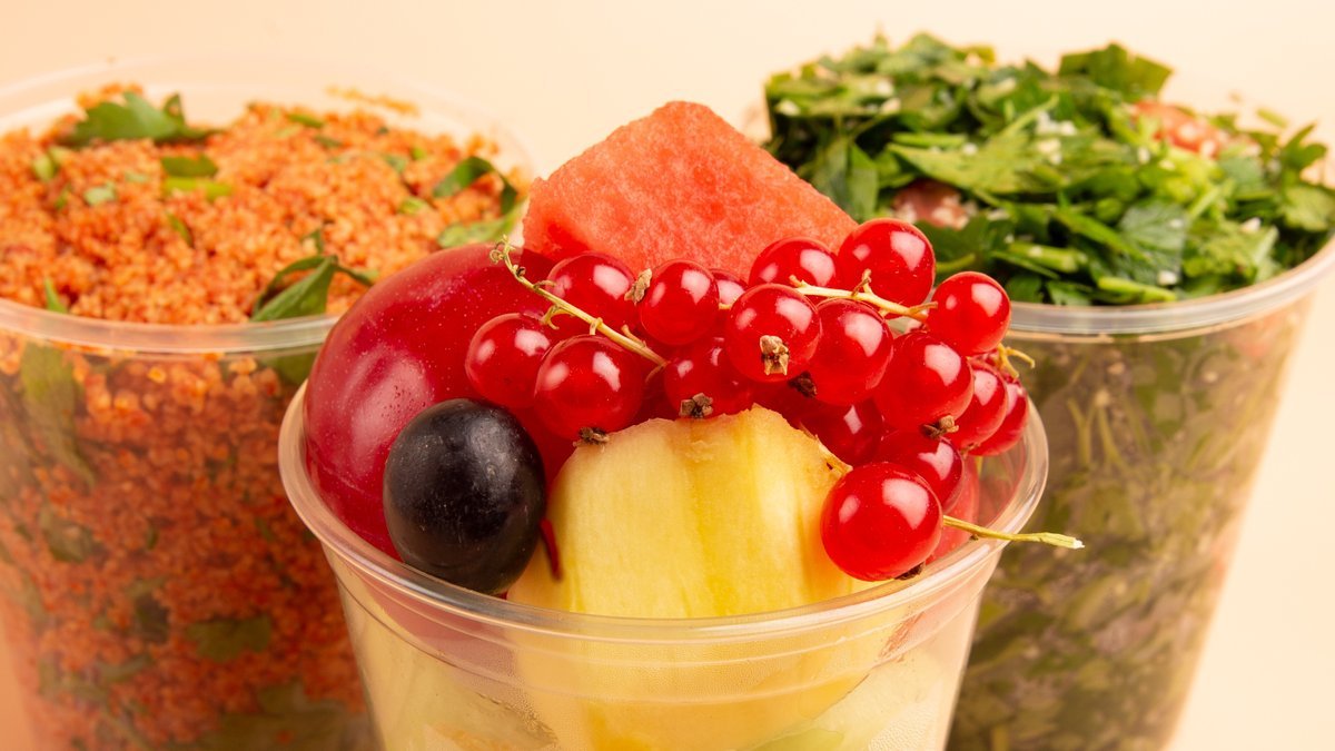 A collection of healthy snacks - fruit and curd cups or falafel and noodles! Verkäufer: Firma: Wolt Enterprises Deutschland GmbH, Anschrift: Stralauer Allee 6, 10245 Berlin, Geschäftsführer: Hadi Zaklouta, Handelsregisternummer: HRB 217122 B, Registergericht: Amtsgericht Charlottenburg, E-Mail: support@wolt.com