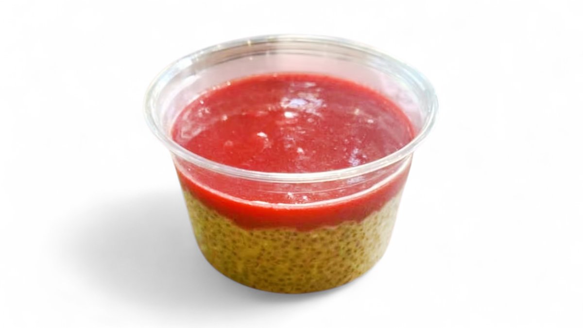 Matcha, Erdbeeren, Haferflocken, Chiasamen, Agavendicksaft und Haferdrink Vegan, Zuckerfrei