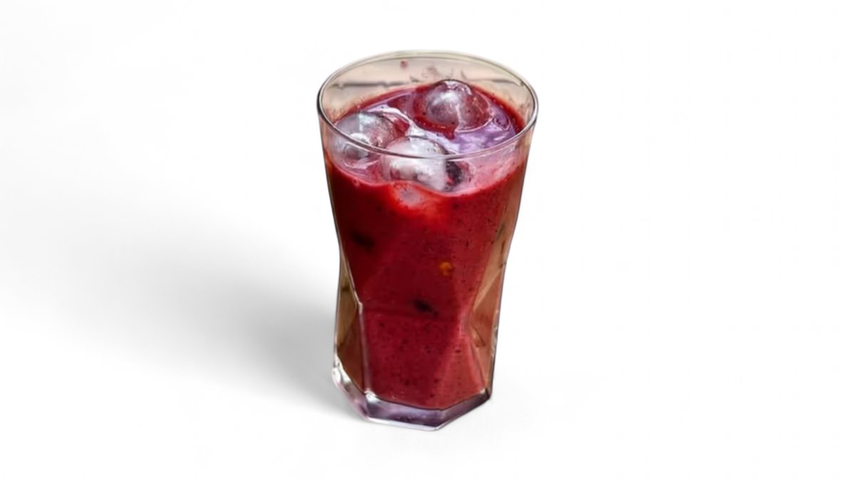 Himbeere, Erdbeere, Banane, Haferdrink und Hagebuttenpulver