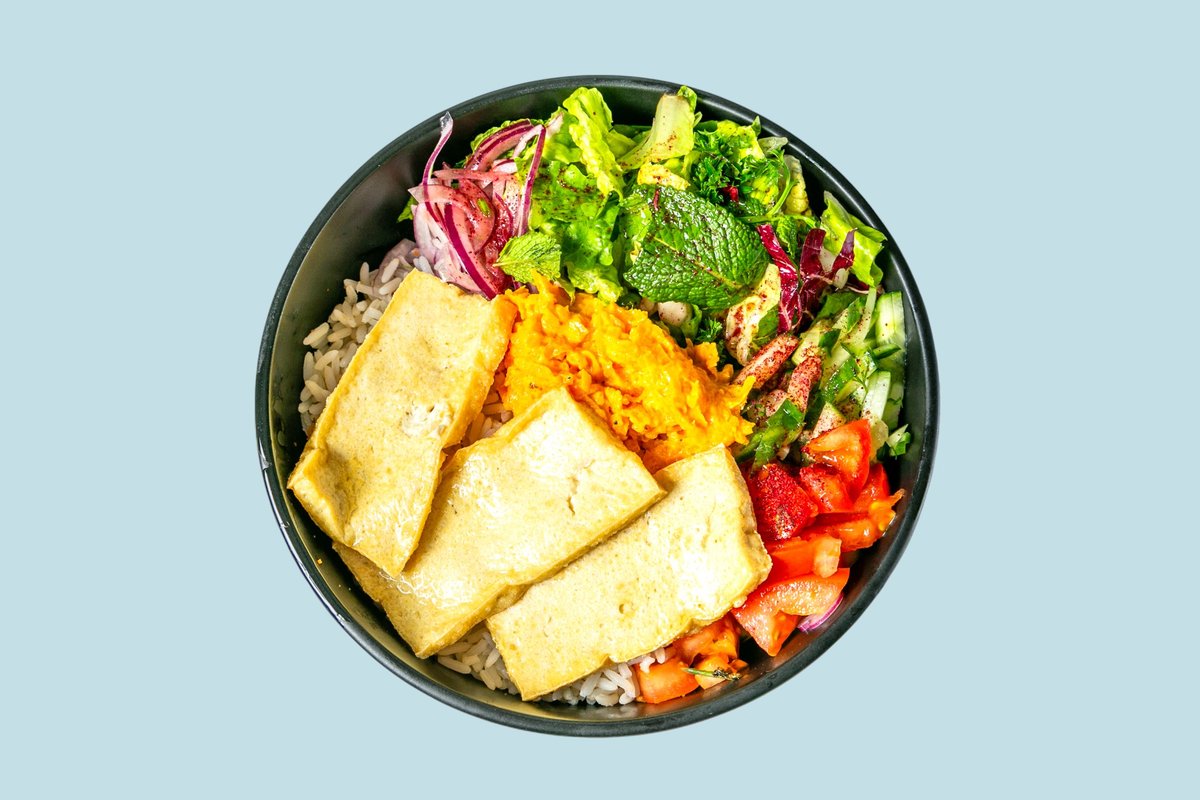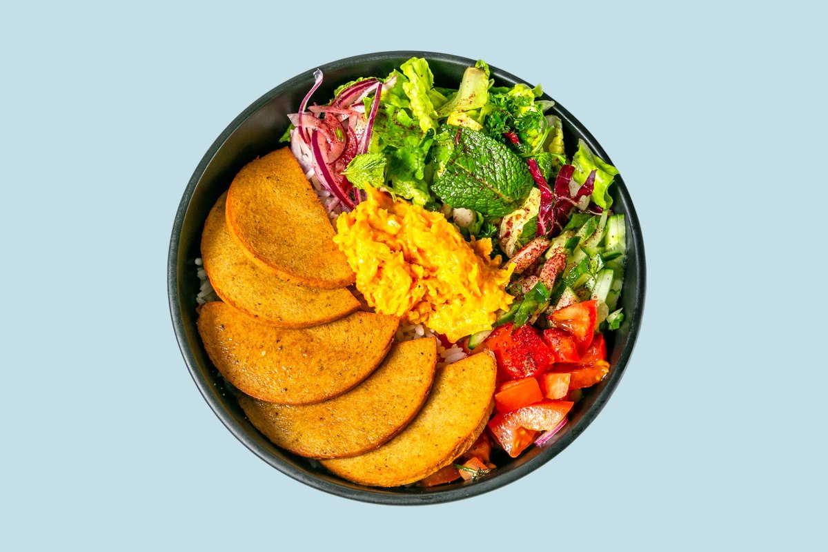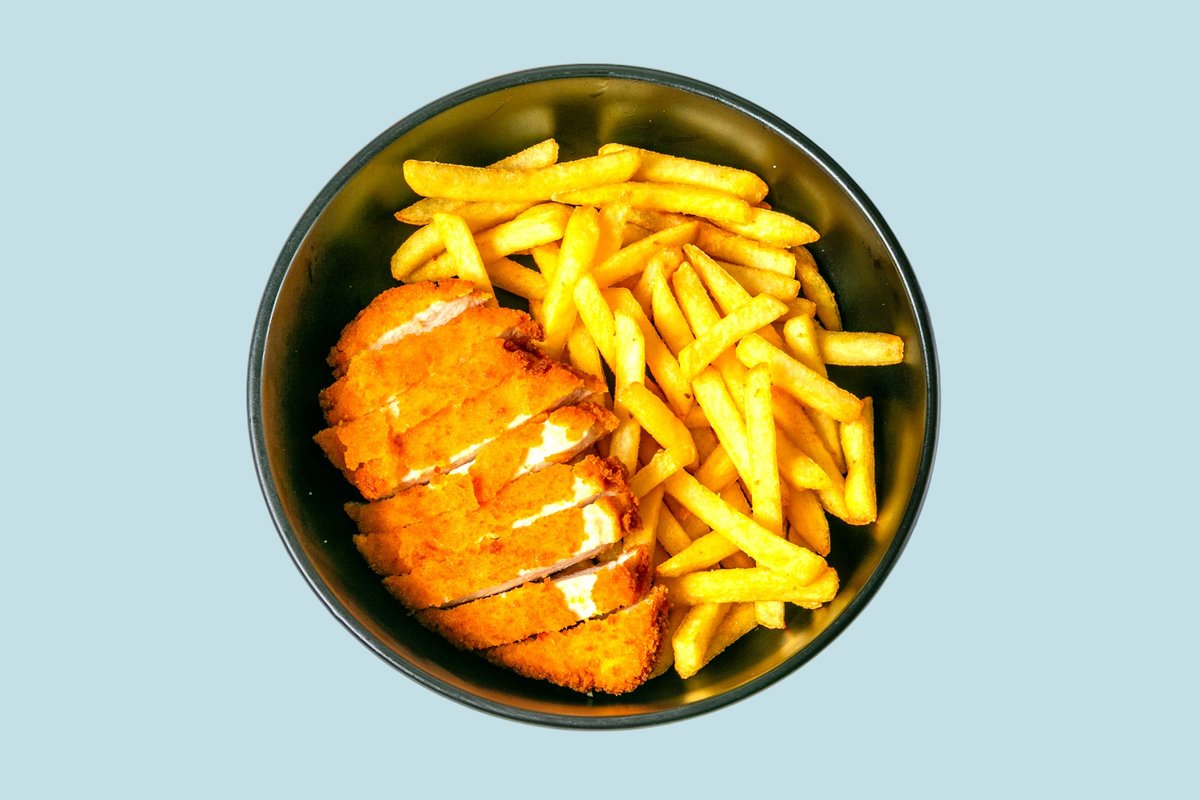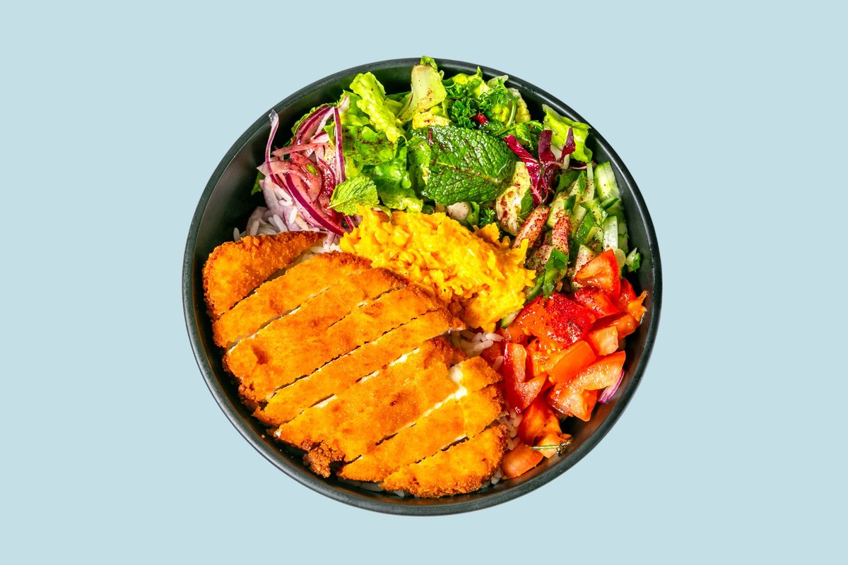 alle Gerichte werden mit einer Beilage, einem Topping und einer Soße deiner Wahl serviert