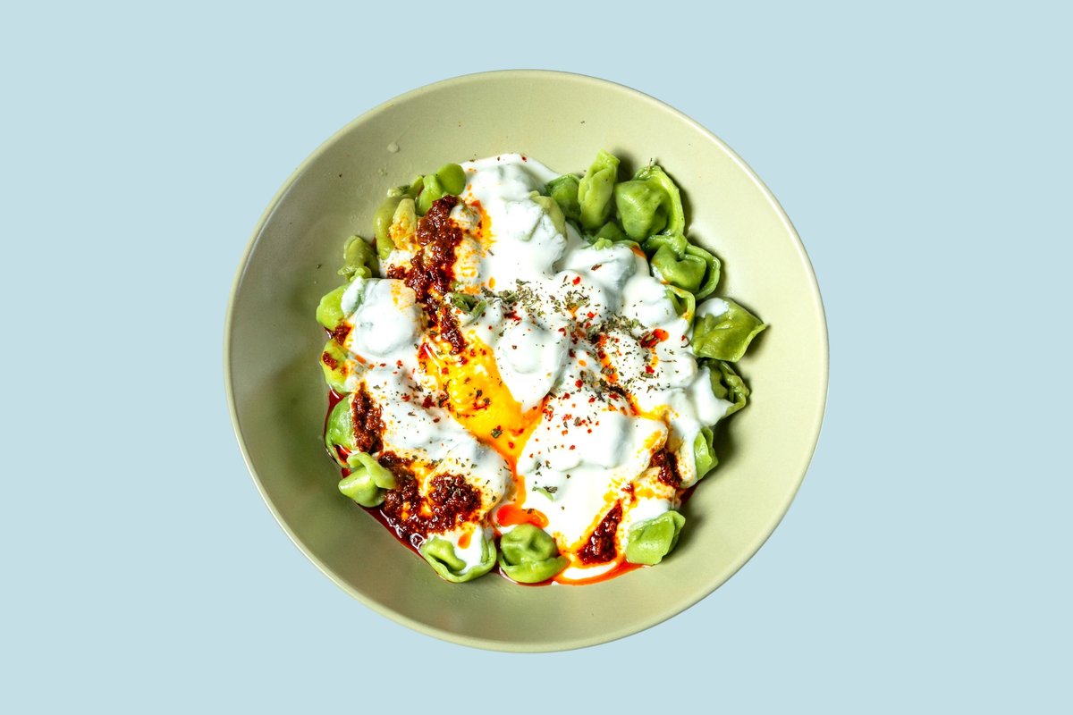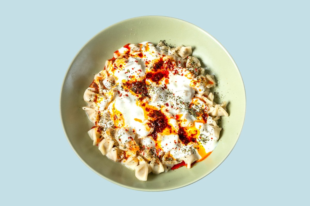 alle Gerichte werden mit Joghurtsoße und geschmolzener Butter zubereitet