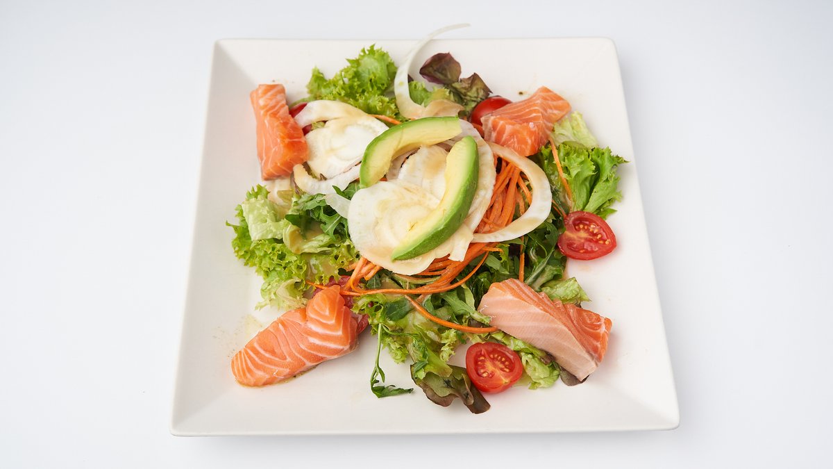 mit gebratenen Lachsstreifen