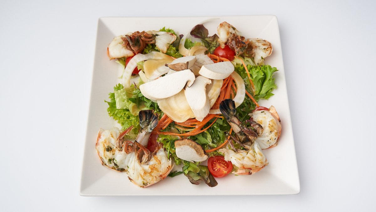 mit gebratenem Scampi
