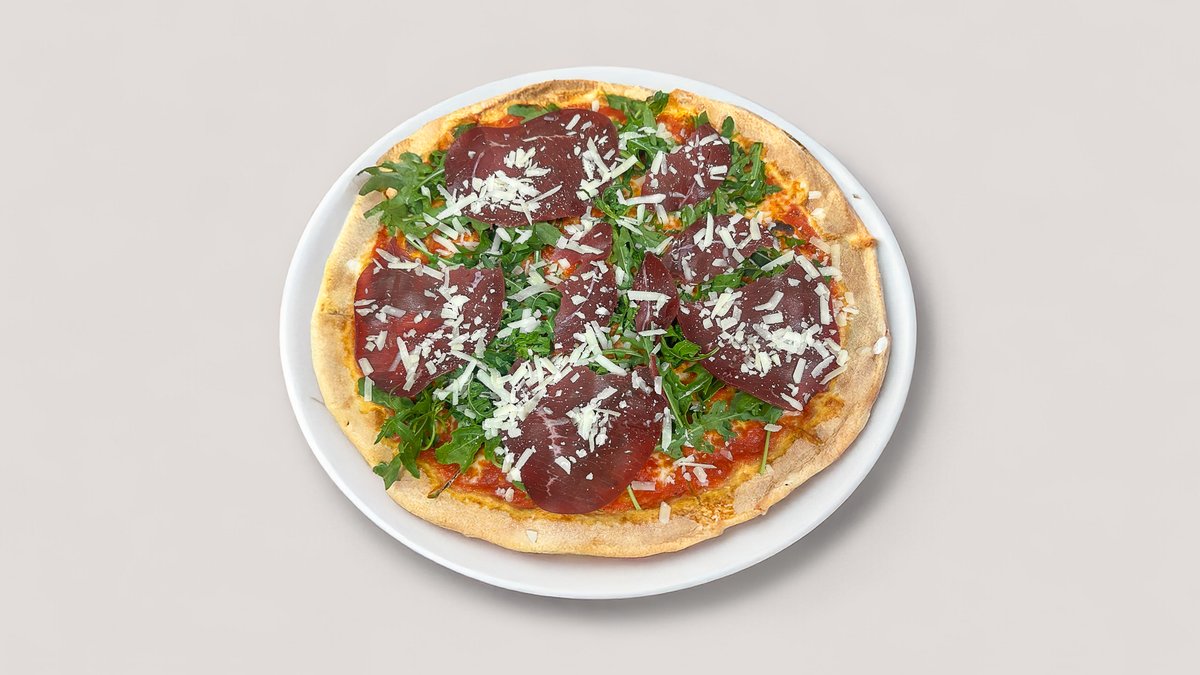 mit luftgetrocknetem Rindfleisch, Rucola und Parmesan
