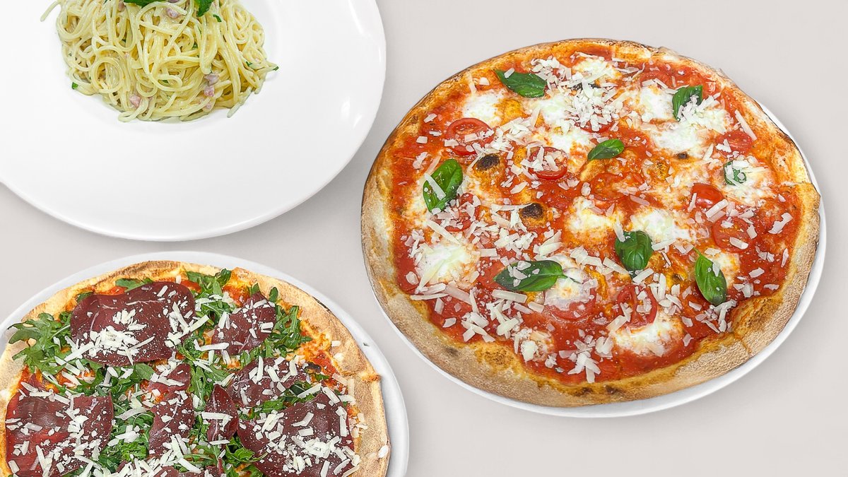 alle Pizzen sind ca. Ø 33 cm groß und werden mit Mozzarella belegt