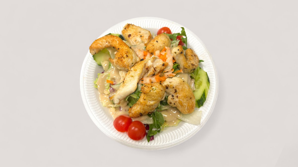 mit Rucola und in Knoblauch marinierte Kirschtomaten