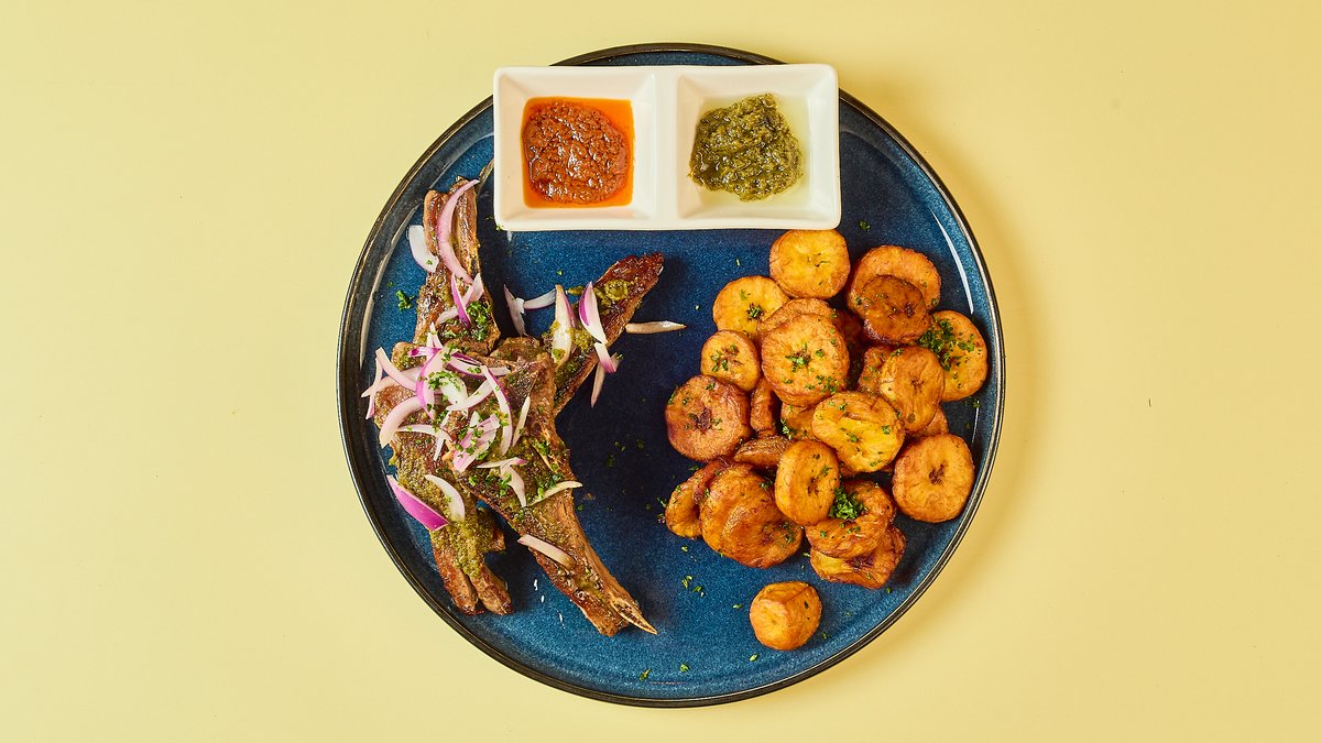 alle Gerichte werden mit Knoblauch, Zwiebeln und kamerunischen Gewürzen zubereitet, mit einer würzigen grünen Soße, pikanter Soße und mit einer Beilage deiner Wahl serviert („Lasagne Kochbanane“ wird ohne Knoblauch, Zwiebeln und kamerunischen Gewürzen zubereitet)