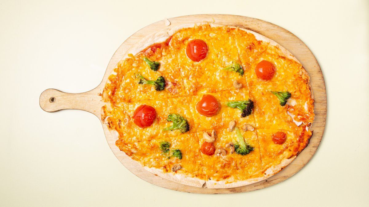 mit Mozzarella, Brokkoli, karamelisierten Kaschunüssen und Kirschtomaten