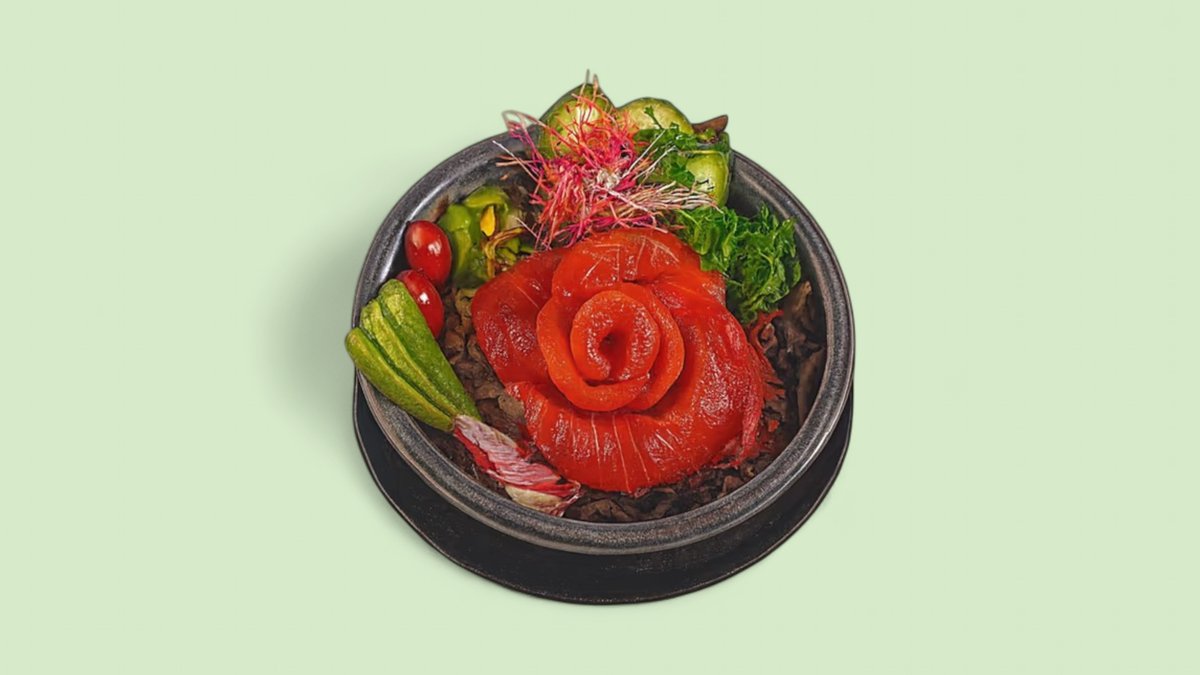 mit flambiertem Lachs, gemischtem Salat, Mango, Gurken, Avocado, Sesam-, Cocktail- und Unagisoße, dazu Sushireis Enthält Alkohol, für Kinder und schwangere Frauen nicht geeignet