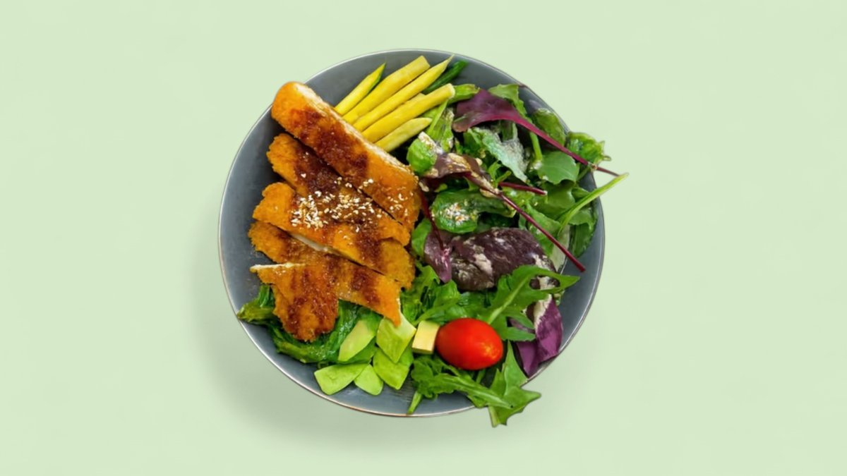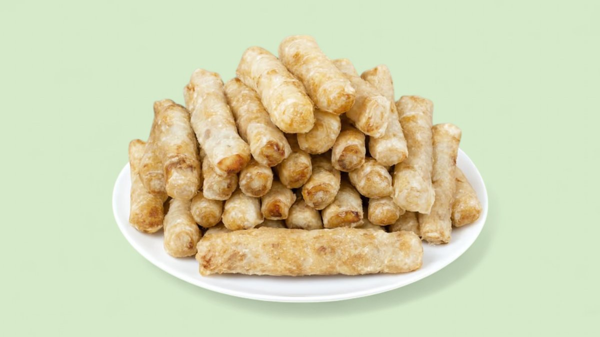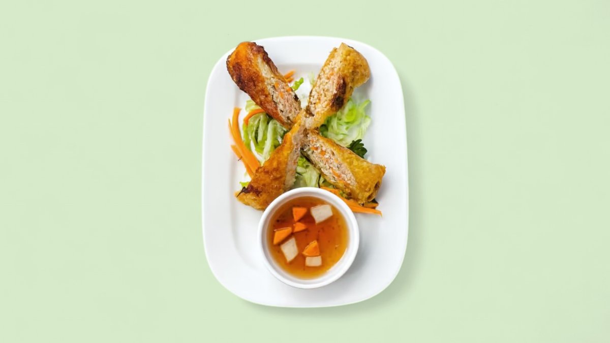 Reispapier, umwickelt mit Reisnudeln und frischem Salat, serviert mit Limettendressing und einer Zutat deiner Wahl
