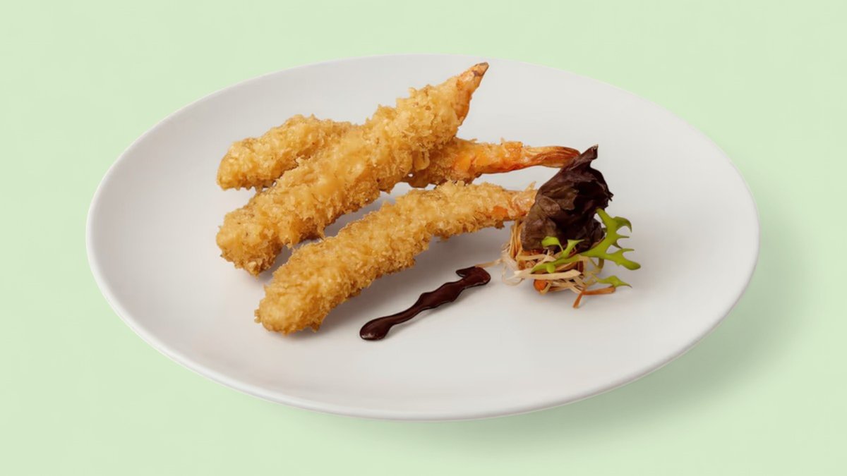 3 Stück frittierte Garnelen mit Salat und Süß-Sauer-Soße