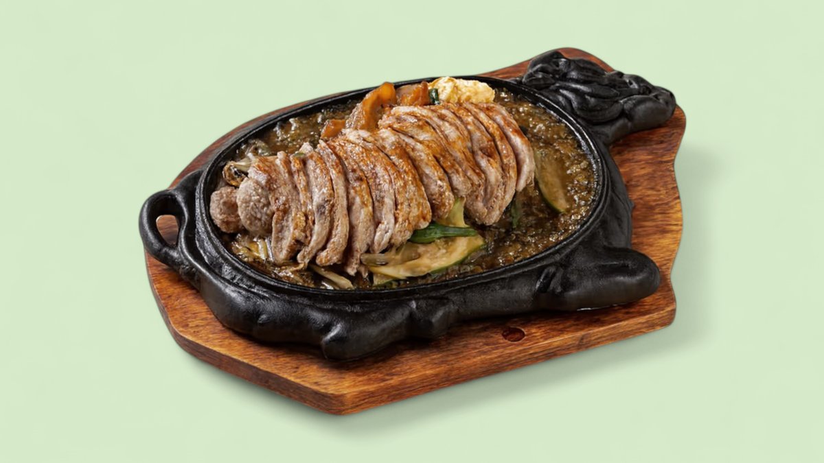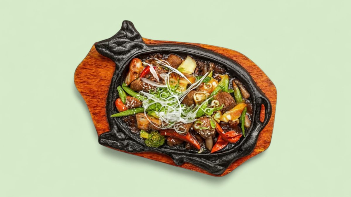 Mangostreifen mit Limetten und Schalotten, serviert mit hausgemachter Soße und einer Zutat deiner Wahl