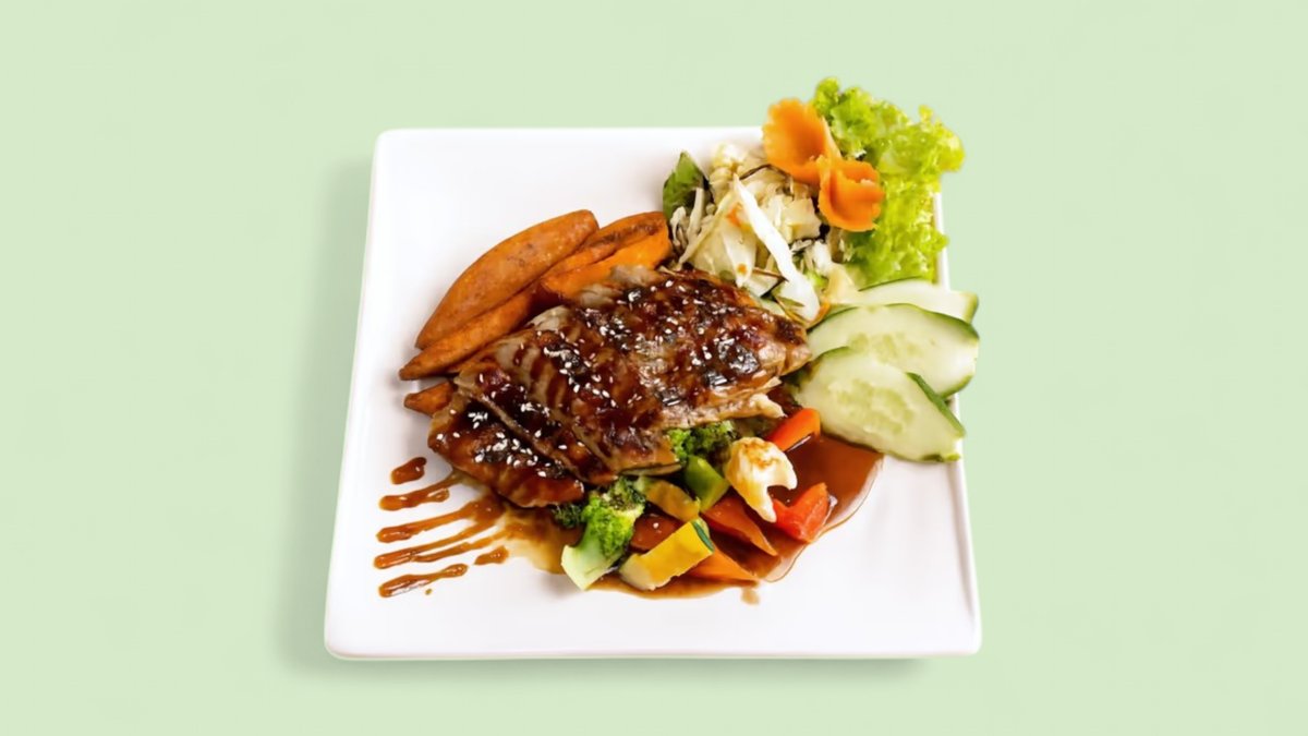 Hähnchen und Süßkartoffel-Pommes mit Unagisoße