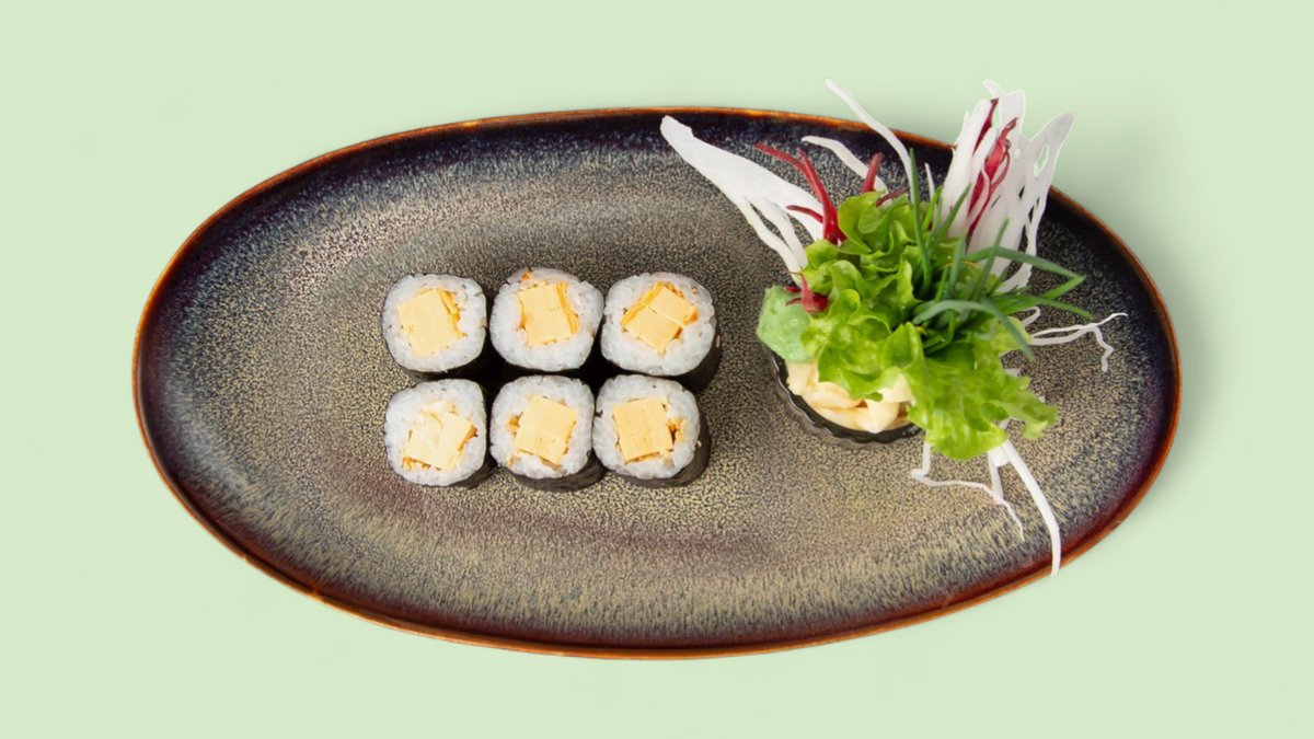 mit Eieromelett, Avocado, Gurken, Frischkäse und Tofu