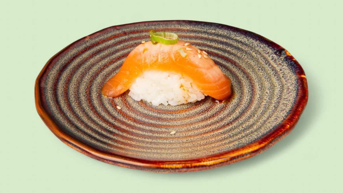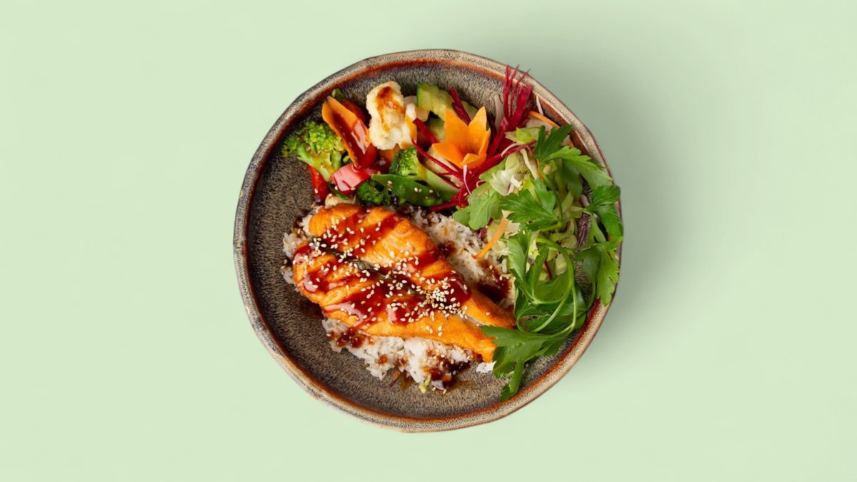 mit Lachshaut, Gurken, Sesam und Teriyakisoße