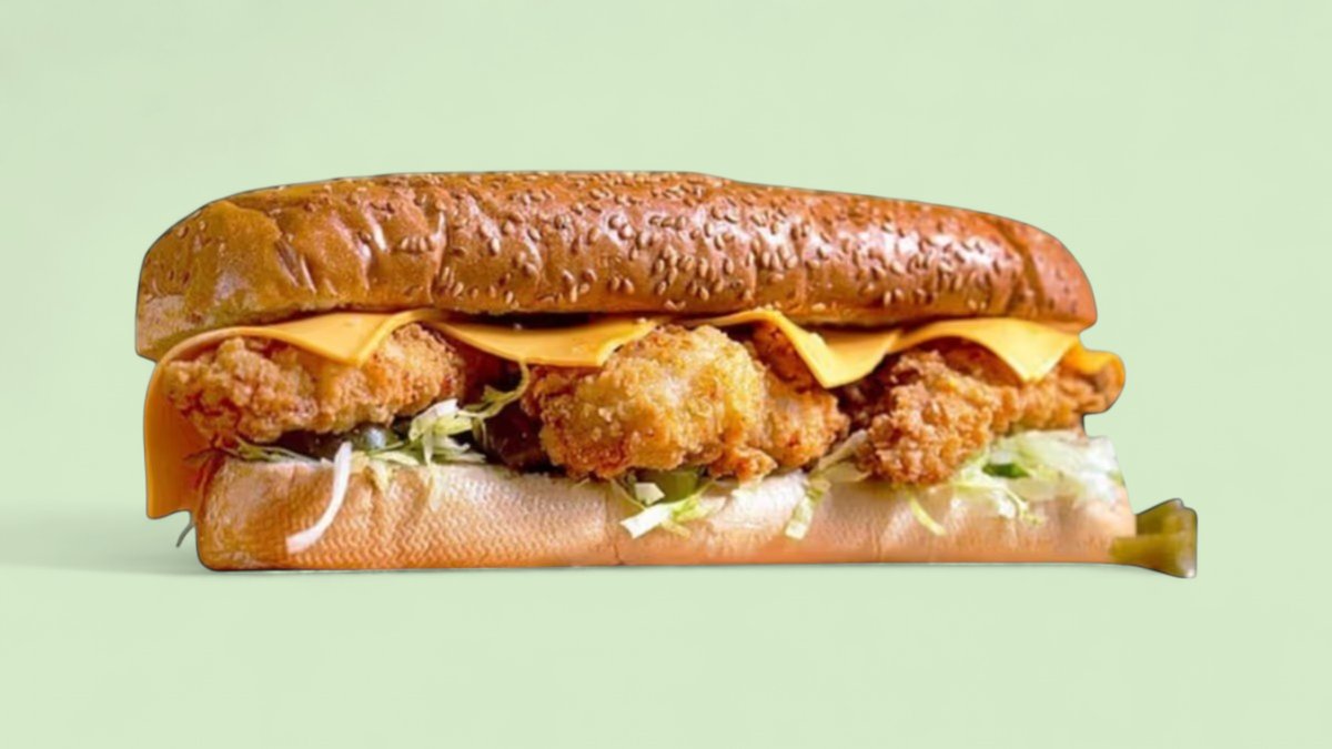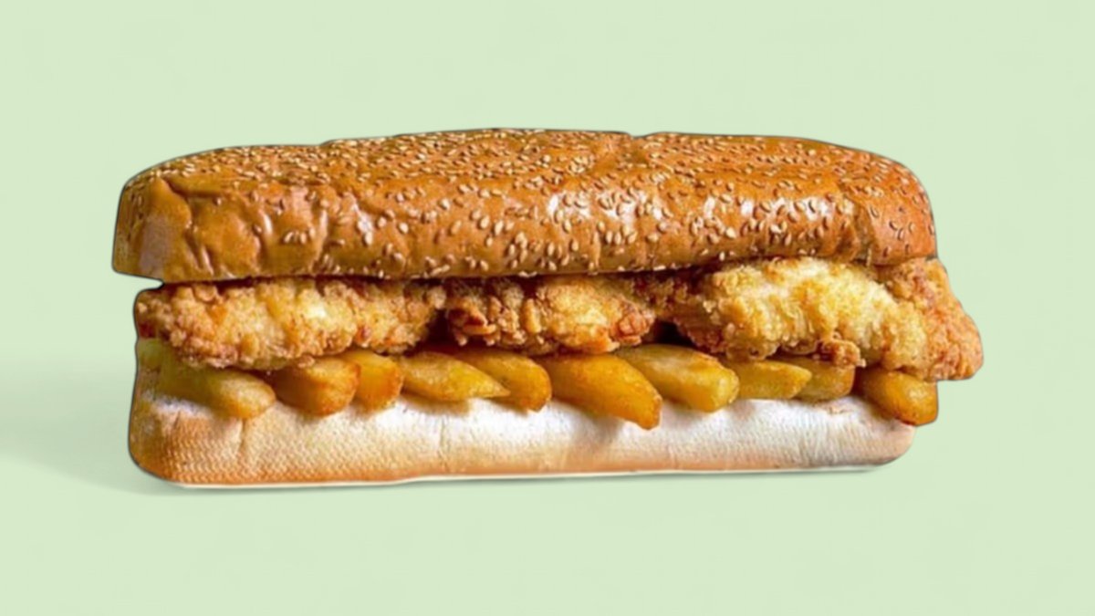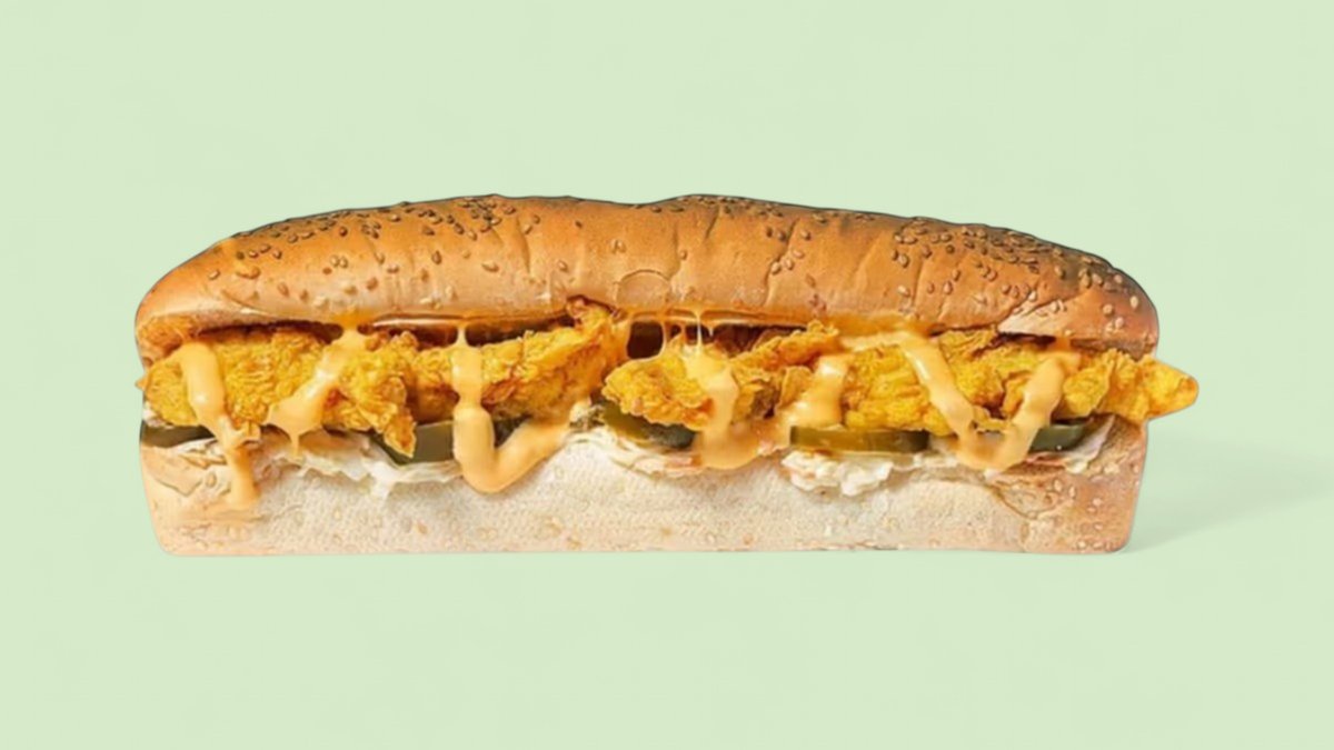 mit frittierten Crispy Chicken Tenders, scharfer Zinger-Soße, Eisbergsalat, Cheddar und Mayonnaise