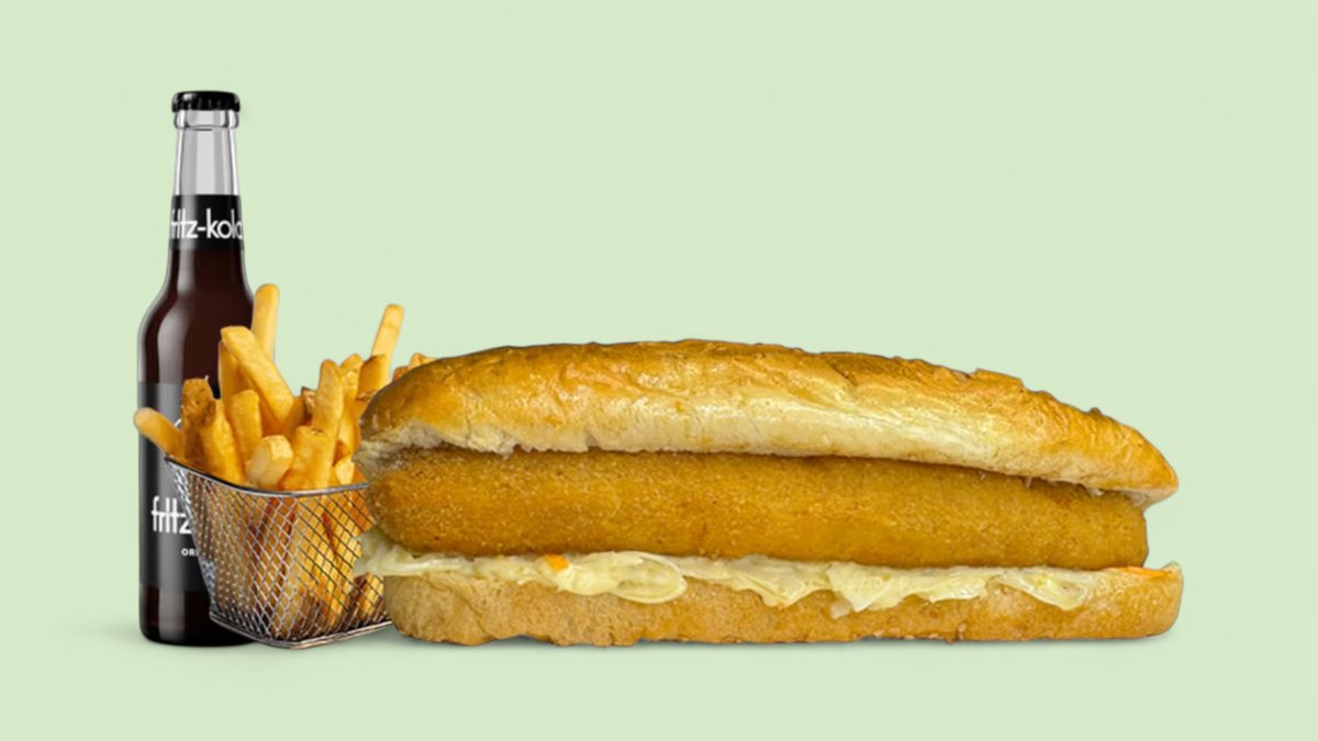 Chicken Nuggets Burger, Pommes und Capri-Sun