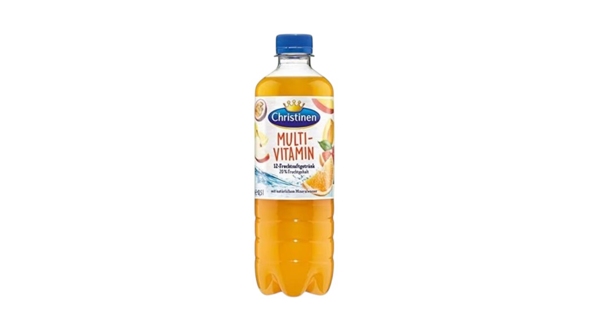 Mehrfrucht-Erfrischungsgetränk aus Wasser, Zucker, Fruchtsaft (Orange, Apfel, Ananas, Maracuja), ohne Kohlensäure