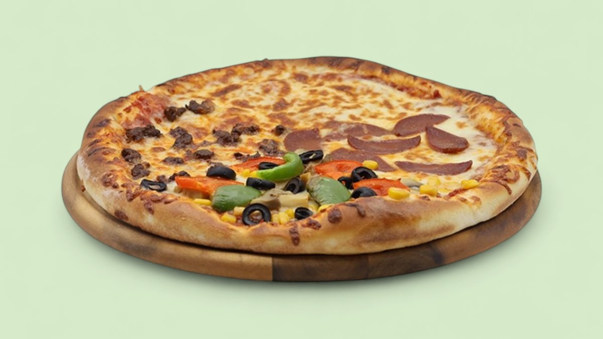 mit Paprika, schwarzen Oliven, Champignons, Rinderhack und türkischer Sucuk