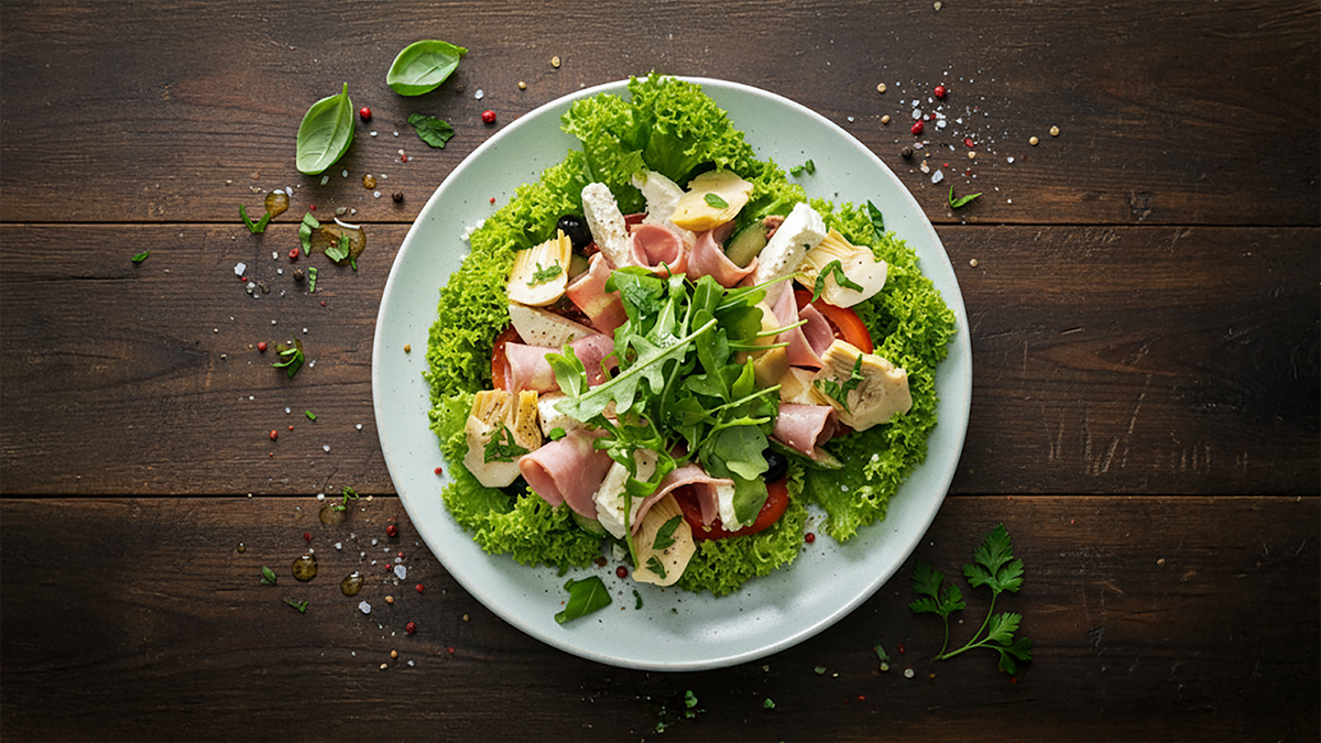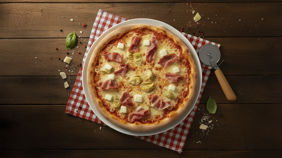 mit Artischocken, gekochtem Truthahnschinken und Schafskäse