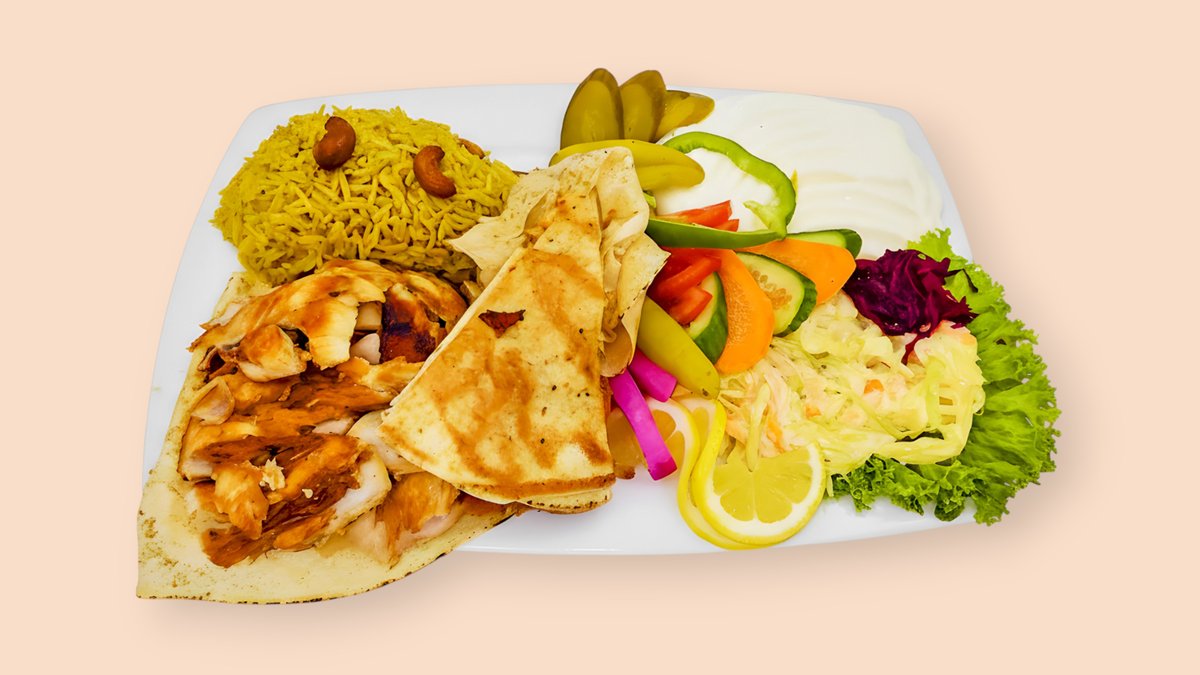 Hähnchen-Schawarma mit Reis und Salat