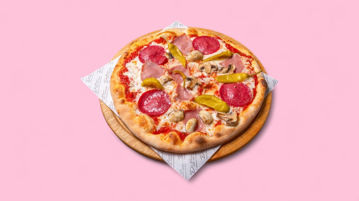 mit frischen Champignons, Rindersalami, Putenschinken und Peperoni