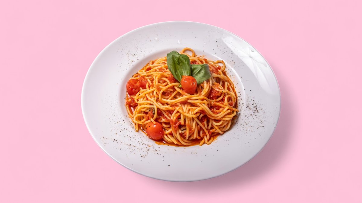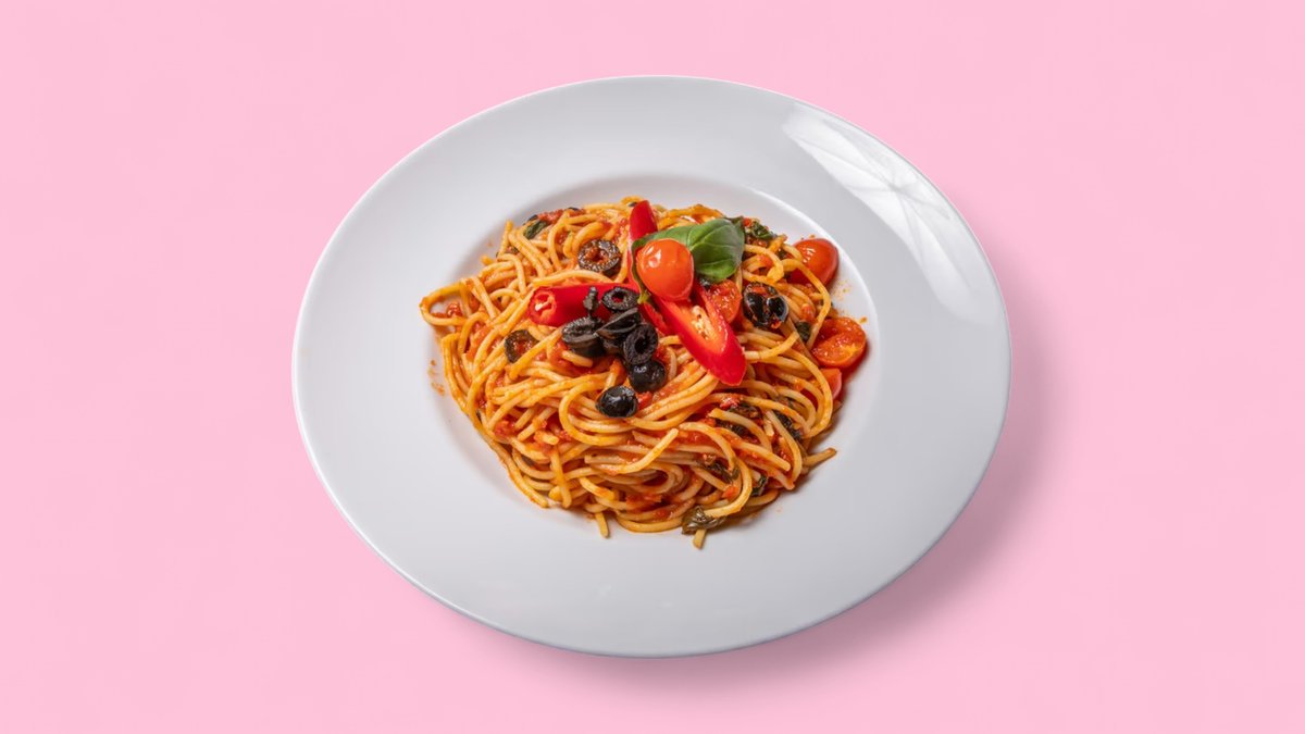 scharf mit Tomatensoße, Knoblauch, Chilischoten und Basilikum