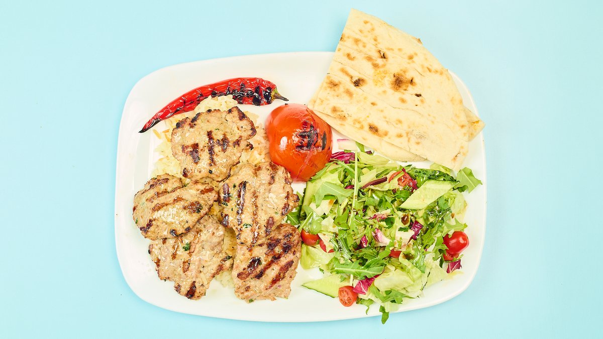 mit Hackfleischspieß vom Rind und Lamm