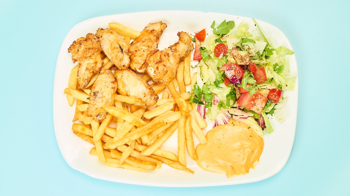 mit Salat, einer Zutat und einer Soße deiner Wahl